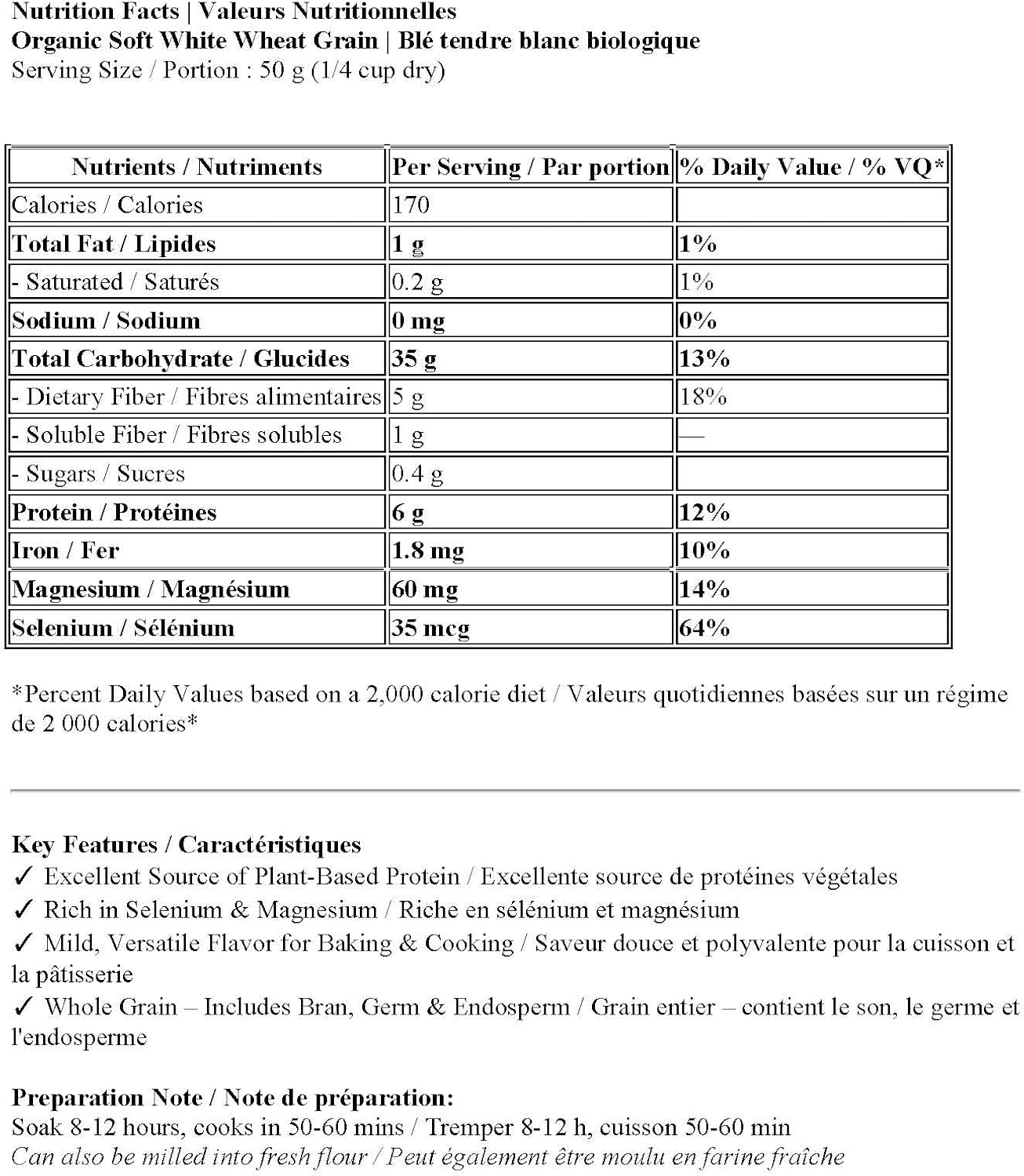 - CERTIFIED ORGANIC: 100% certified organic soft white wheat berries grown in Canada, ensuring premium quality whole grain