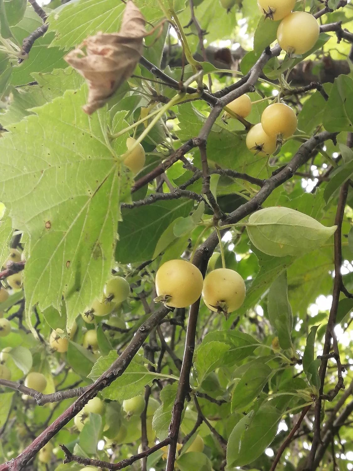 Luckily, this area has a few crab apples to decorate itself. Opposite to the Callery pears, crab apples do nothing but good. The bloom is nice and the fruits are scented. They also host an army of beneficial insects and birds. Replacing the invasive pears with crab apples would be the right thing to do, for the outlook of your landscape and your health.
