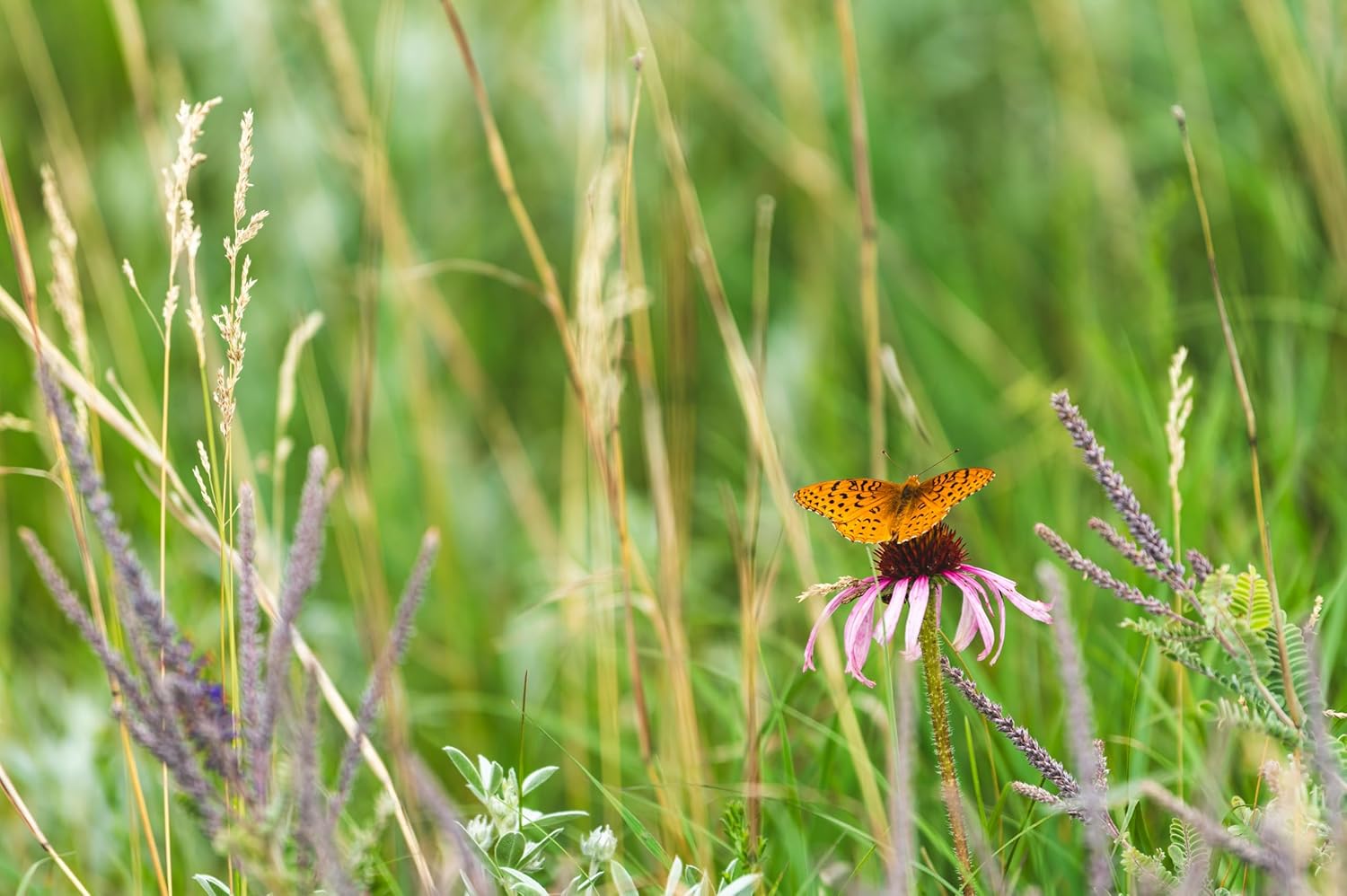 Pale purple coneflower is the only Echinacea native to Ontario. It is a sometimes aggressive plant that shows off best and benefits from mixing with grasses. Plant several clumps of the flowers among a larger planting of little bluestem grasses, and dot some individual plants throughout. Consider adding butterfly weed and evening primrose, which are its friends in their native habitats.